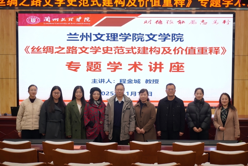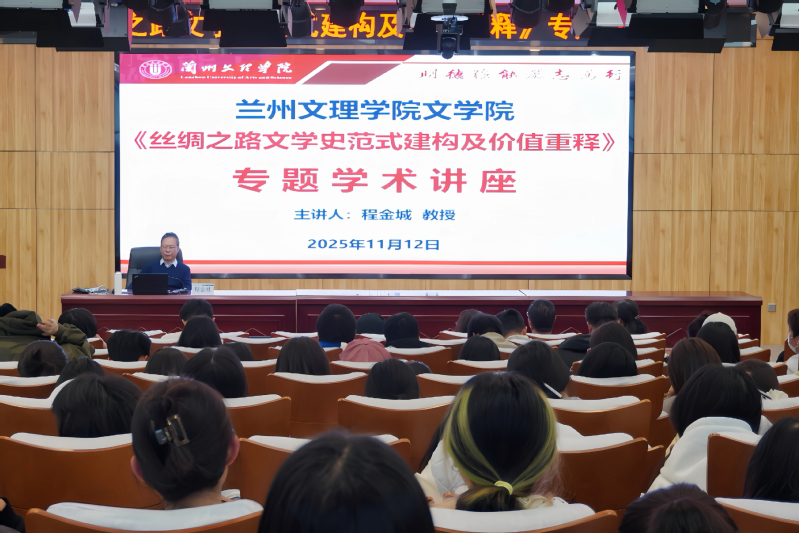 11月12日下午,兰州大学教授、博士生导师程金城应邀为文学院师生作题为“丝绸之路文学史范式建构及价值重释”的讲座。讲座由文学院院长叶淑媛主持,文学院教师及2025级汉语言文学专业、2024级非遗专业学生参加。