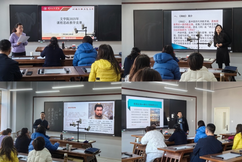 为进一步落实“大思政”工作要求,推动课程思政教学创新,12月4日下午,文学院在数字书法教室开展2025年度“课程思政”教学竞赛。竞赛邀请马克思主义学院思政教师及文学院骨干教师组成评委组,学院全体教师参加观摩竞赛。