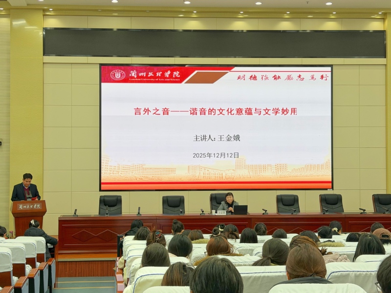 12月12日下午,兰州文理学院文学院教授王金娥应邀为学院师生作题为“言外之音——谐音的文化意蕴与文学妙用”的讲座。文学院汉语言文学专业师生参加。